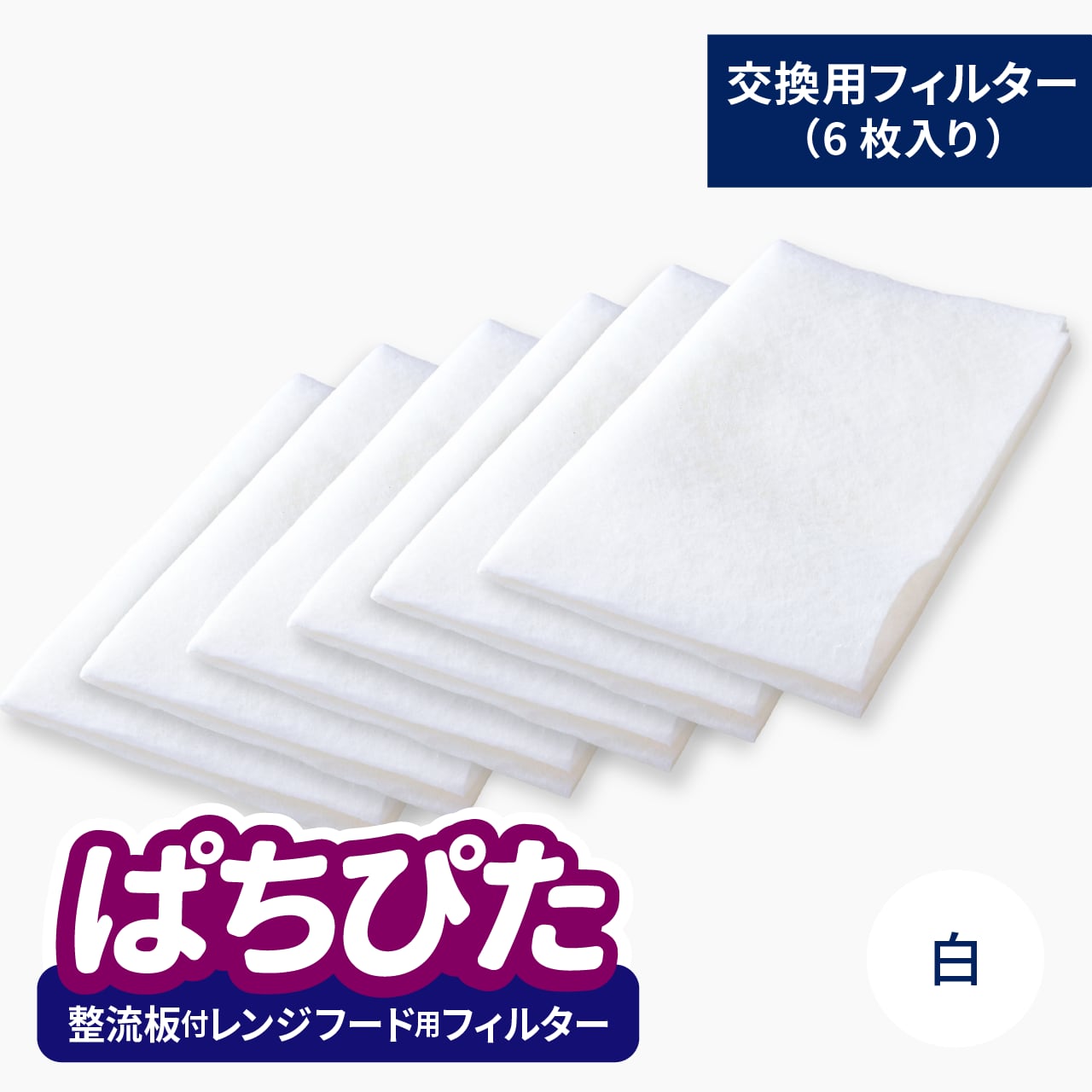 「ぱちぴた」整流板付レンジフード用フィルター 交換用白フィルター6枚セット